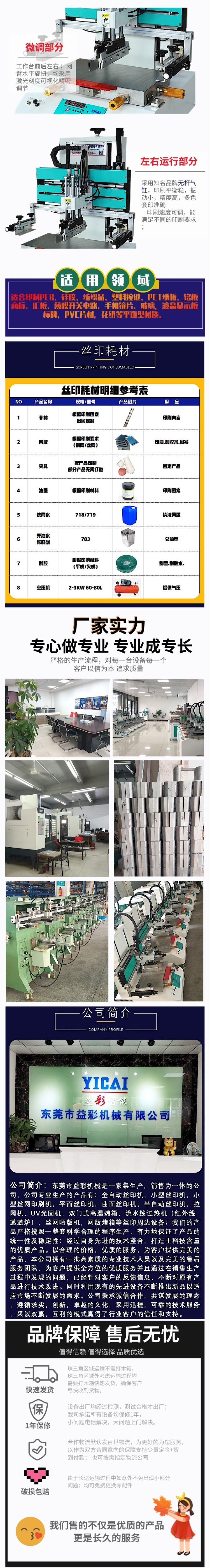 簡要描述 1.此款小型絲印機,做工精細,實用性強,性價比高; 2.微電腦控制系統(tǒng),自動化程度高,操作簡單,容易上手; 3.綜合性微調(diào)裝置,適應(yīng)不同的印刷需求 Application: Be applied to the flat printing for glass CD, nameplate, stickers, credit card Ceramic colored paper, wooden toy puzzles and membrane switches in electronic industry. It is also applicable to the flat printing such as golden and silver cardboard metal sheet, and other products with the material of Pvc, which have high requirement in overprinting